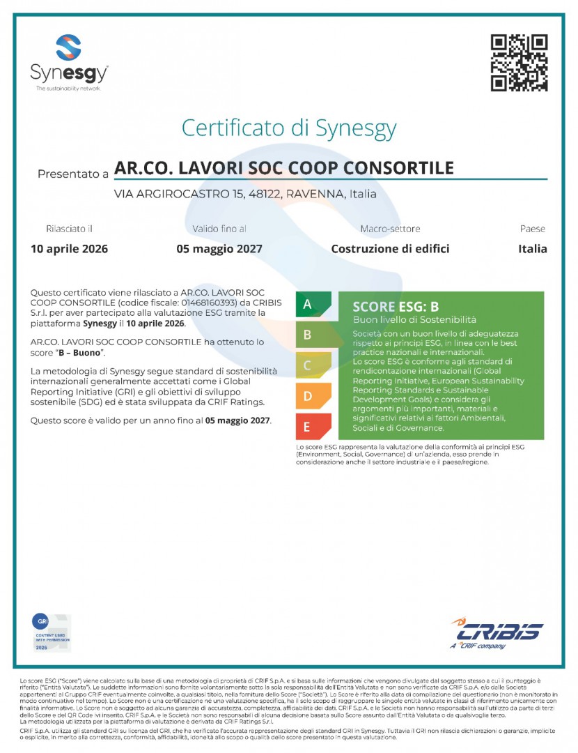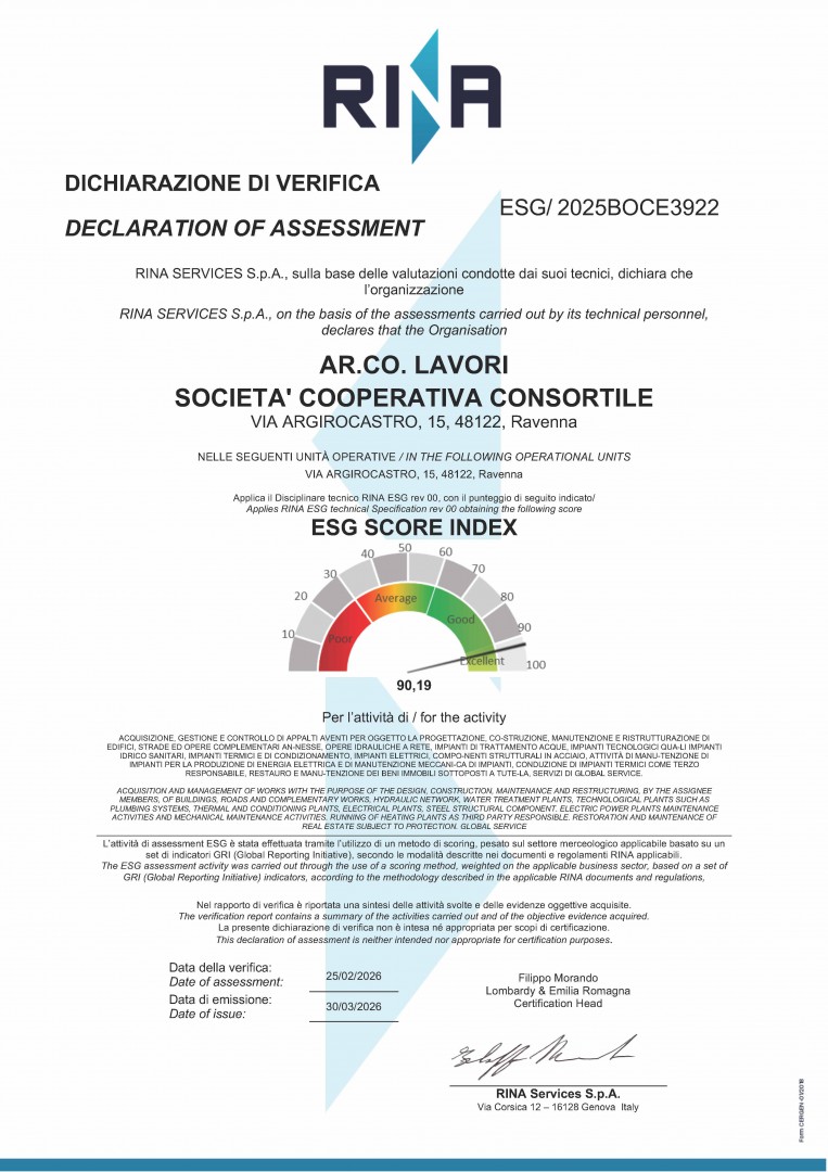 Il Codice Etico, approvato dall’Assemblea dei Soci, ha validità sia in Italia che all’estero ed esprime le responsabilità etiche e gli impegni alle quali i Soci intendono orientare, in quanto applicabili, i propri comportamenti, con particolare riferimento alle attività sviluppate nell’ambito consortile. Al rispetto di tale Codice Etico l’Assemblea dei Soci vincola i comportamenti degli amministratori, dei dirigenti, dei procuratori, di tutti i dipendenti e dei collaboratori della Società. Il Codice Etico si applica a tutte le società appartenenti al Gruppo Ar.co. Lavori S.c.c. ed è vincolante per i comportamenti di tutti i suoi collaboratori.